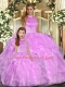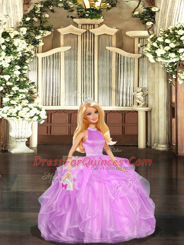 Hot Sale Lilac Quinceanera Dress Sweet 16 and Quinceanera with Beading and Ruffles Halter Top Sleeveless Backless
