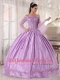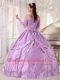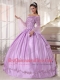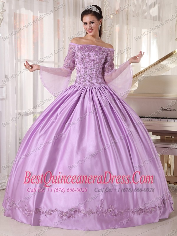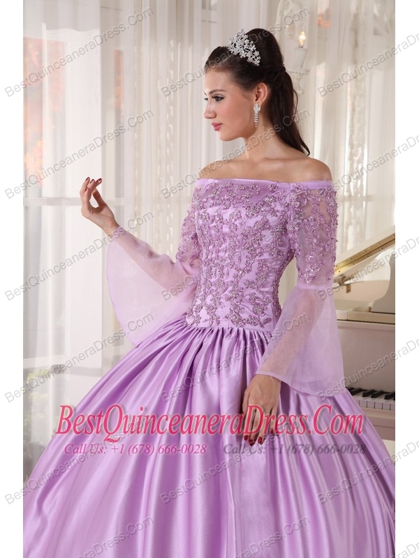 Lavender Ball Gown Off The Shoulder Floor-length Taffeta and Organza Appliques Quinceanera Dress