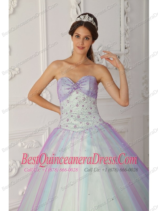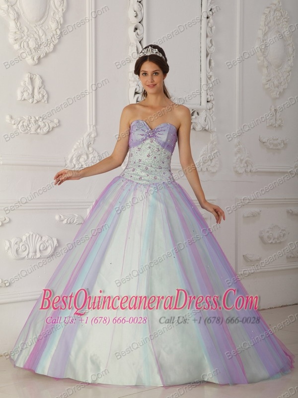 Multi-Color A-Line / Princess Sweetheart Floor-length Taffeta and Tulle Beading and Sequins Quinceranera Dress