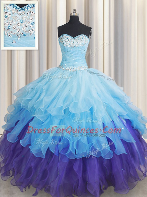 Multi-color Sleeveless Beading and Ruffles and Ruffled Layers and Sequins Floor Length Sweet 16 Dress