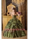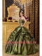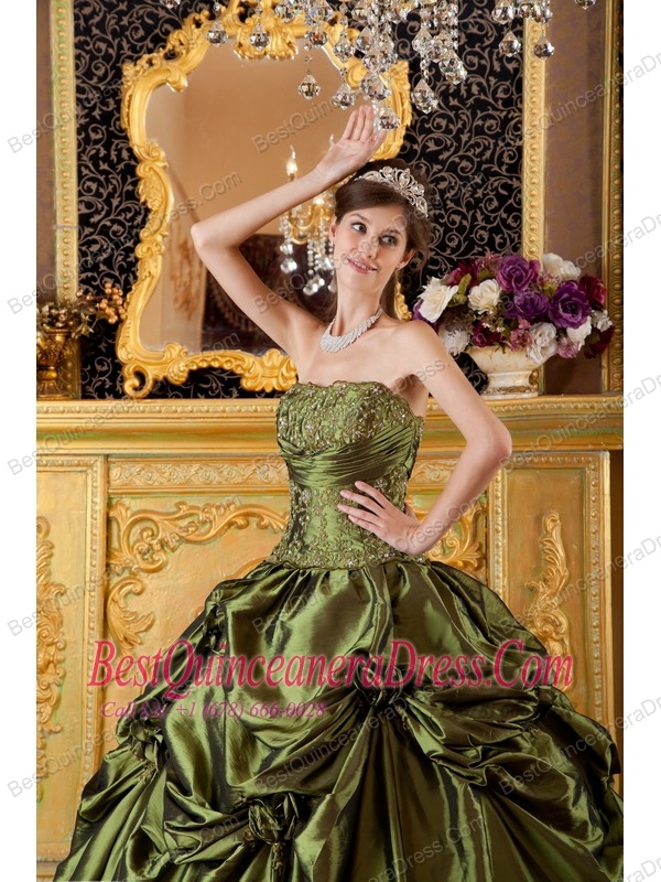Olive Green Ball Gown Strapless Floor-length Taffeta Appliques Quinceanera Dress