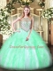 Pretty Tulle Sleeveless Floor Length 15th Birthday Dress and Beading and Ruffles