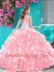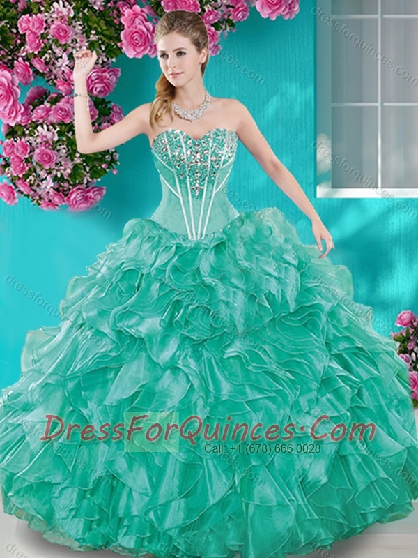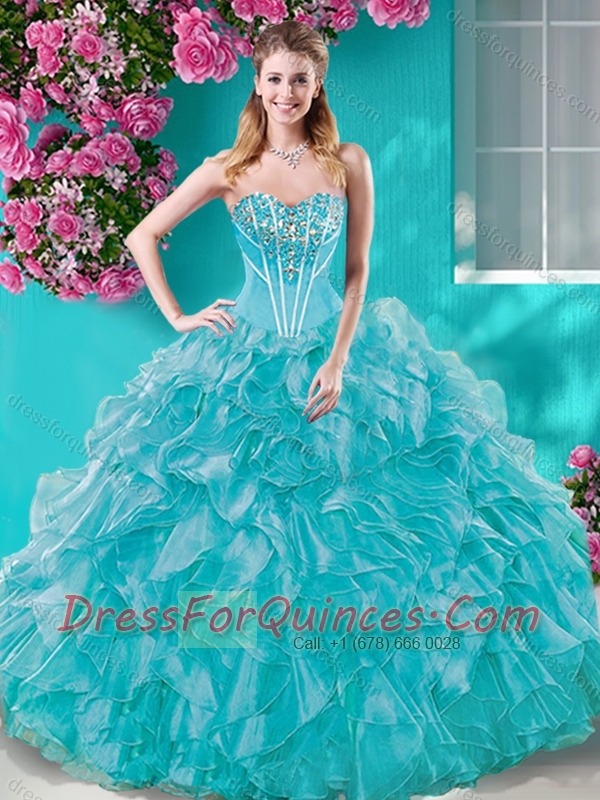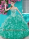 Puffy Skirt Ruffled and Beaded Quinceanera Dress in Turquoise