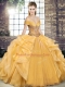 Romantic Gold Off The Shoulder Lace Up Beading and Ruffles Quinceanera Gown Sleeveless