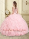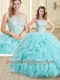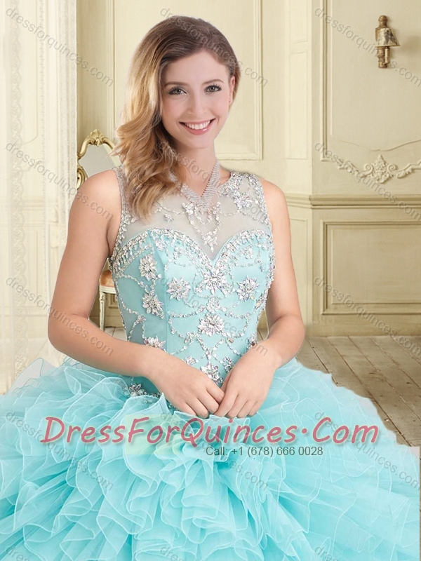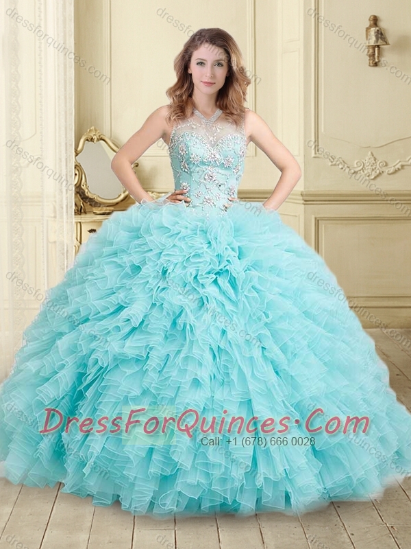 Simple See Through Beaded and Ruffled Sweet 16 Dress in Aqua Blue