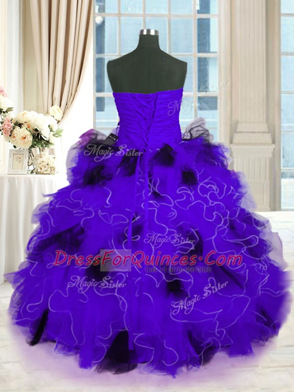 Strapless Sleeveless Tulle Quinceanera Dresses Beading and Ruffles Lace Up