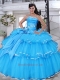 Strapless Tulle Aqua Blue Quinceanera Gowns with Appliques