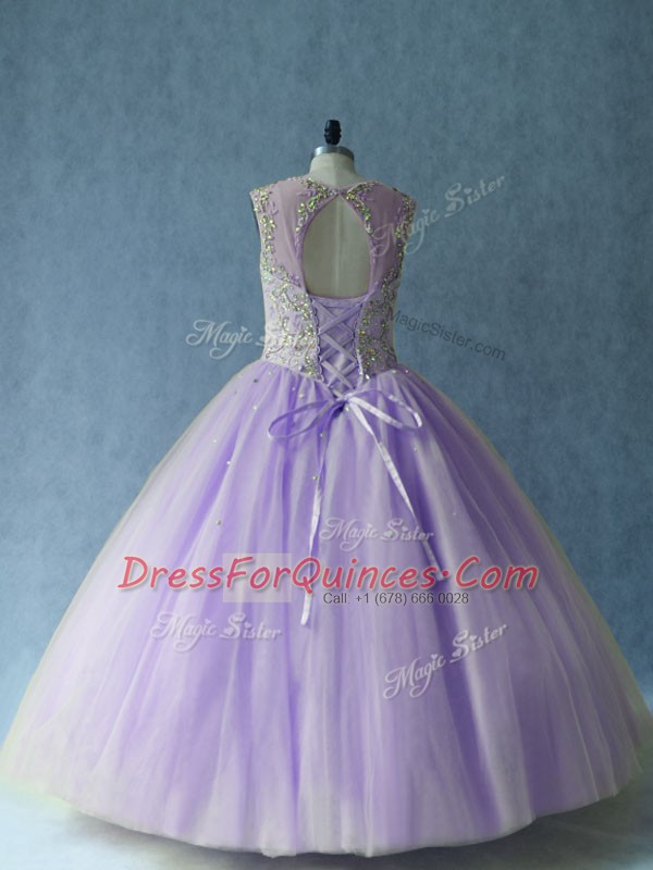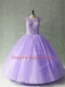 Stunning Tulle Scoop Sleeveless Lace Up Beading Quinceanera Dress in Lavender