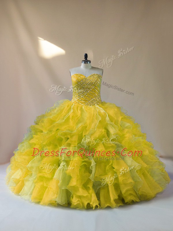 Sumptuous Multi-color Ball Gowns Beading and Ruffles Quince Ball Gowns Lace Up Organza Sleeveless Floor Length
