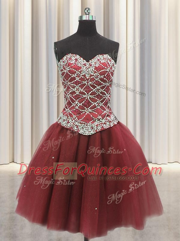 Three Piece Burgundy Lace Up Sweet 16 Dress Beading and Sequins Sleeveless Floor Length