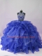 Top Selling Floor Length Royal Blue 15th Birthday Dress Organza Sleeveless Beading and Ruffles