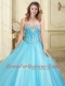 Visible Boning Really Puffy Beaded Quinceanera Gown in Aque Blue