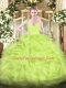 Yellow Green Zipper Sweet 16 Dresses Ruffles Sleeveless Floor Length
