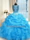 Baby Blue Zipper Straps Beading Quinceanera Gowns Organza Sleeveless