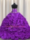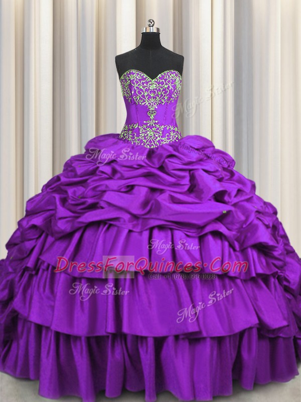 Best Brush Train Purple Sleeveless Beading and Embroidery and Ruffled Layers and Pick Ups Lace Up Vestidos de Quinceanera