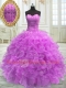 Best Lilac Sweetheart Neckline Beading and Ruffles Ball Gown Prom Dress Sleeveless Lace Up