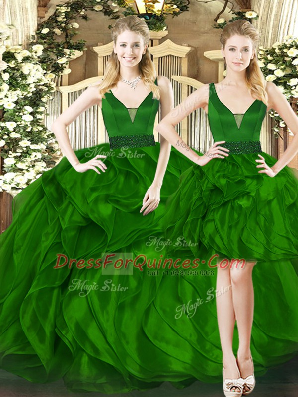 Best Selling Ball Gowns Sweet 16 Dresses Dark Green Straps Tulle Sleeveless Floor Length Lace Up