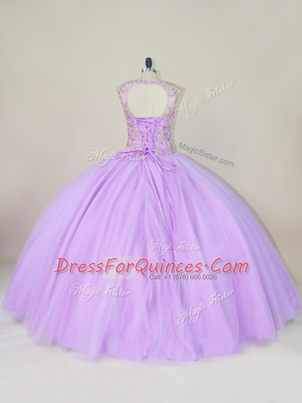 Best Selling Lavender Ball Gowns Scoop Sleeveless Tulle Floor Length Lace Up Beading Sweet 16 Dress