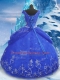 Blue Ball Gowns V-neck Short Sleeves Tulle Floor Length Lace Up Beading and Appliques Quinceanera Dresses