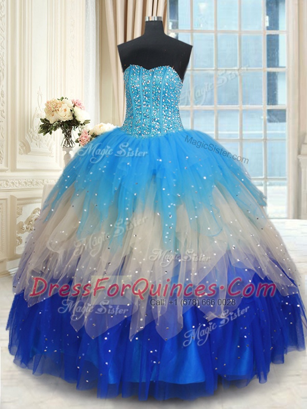 Clearance Multi-color Sleeveless Tulle Lace Up Sweet 16 Dresses for Military Ball and Sweet 16 and Quinceanera