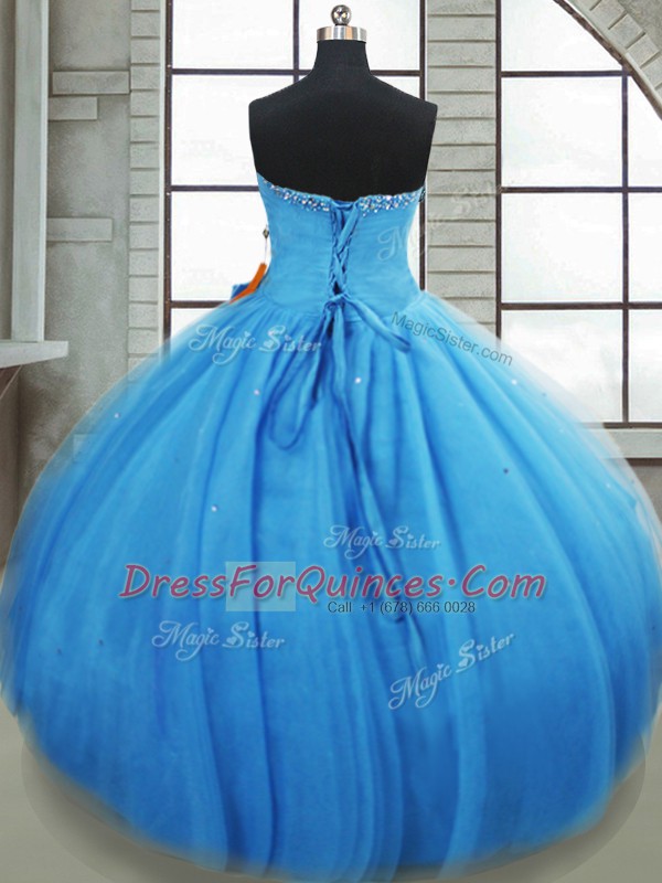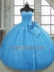 Customized Baby Blue Quinceanera Dress Military Ball and Sweet 16 and Quinceanera with Bowknot Sweetheart Sleeveless Lace Up
