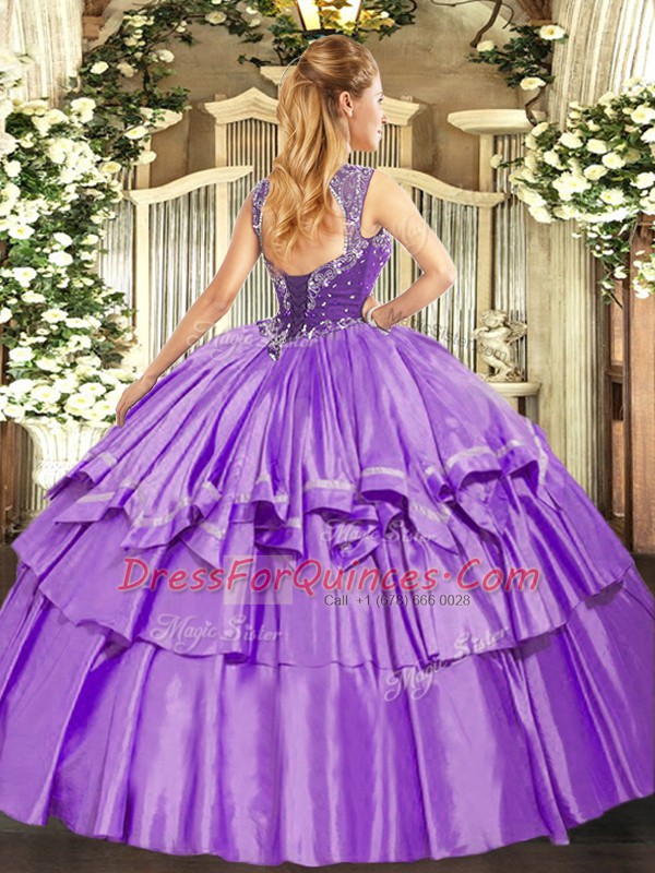 Cute Lilac Straps Neckline Beading and Ruffled Layers 15th Birthday Dress Sleeveless Lace Up