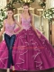 Dazzling Beading and Ruffles Quinceanera Dresses Fuchsia Lace Up Sleeveless Floor Length