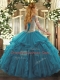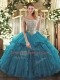 Decent Off The Shoulder Sleeveless Sweet 16 Quinceanera Dress Floor Length Beading and Ruffles Teal Tulle