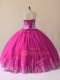 Embroidery Quinceanera Gown Fuchsia Lace Up Sleeveless Floor Length