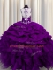 Fantastic See Through Back Floor Length Zipper Quinceanera Gown Purple for Military Ball and Sweet 16 and Quinceanera with Beading and Ruffles and Sequins and Pick Ups