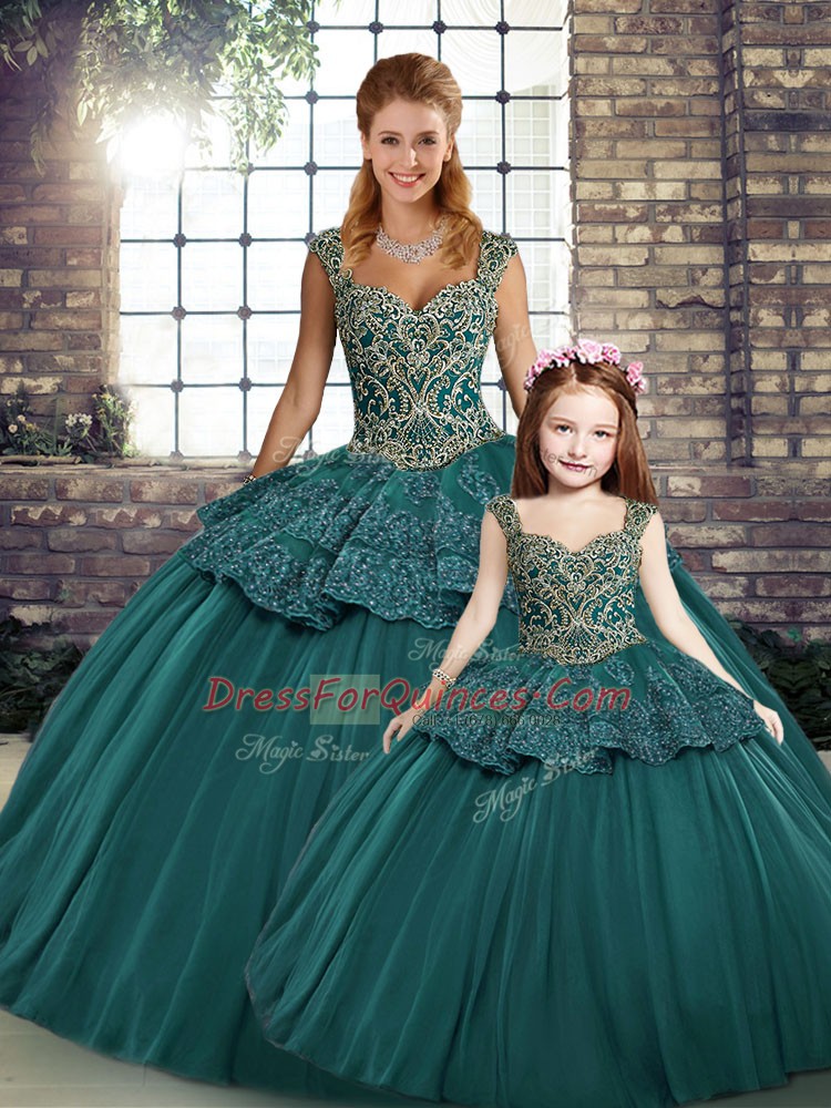 Floor Length Green Vestidos de Quinceanera Straps Sleeveless Lace Up