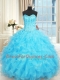 Glittering Floor Length Aqua Blue Vestidos de Quinceanera Organza Sleeveless Beading and Ruffles and Ruffled Layers