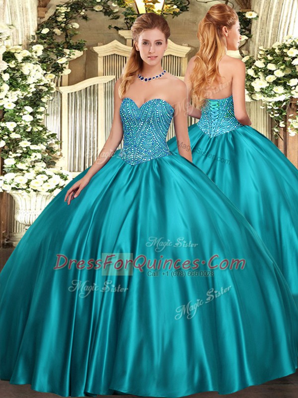 High Quality Sweetheart Sleeveless Satin 15th Birthday Dress Beading Lace Up