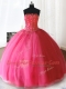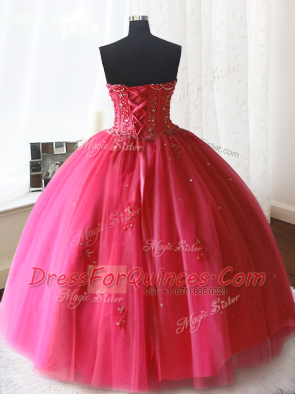 Hot Pink Tulle Lace Up Strapless Sleeveless Floor Length Sweet 16 Dresses Beading and Appliques