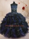 Latest Blue And Black Strapless Lace Up Beading and Ruffles Quinceanera Dress Sleeveless