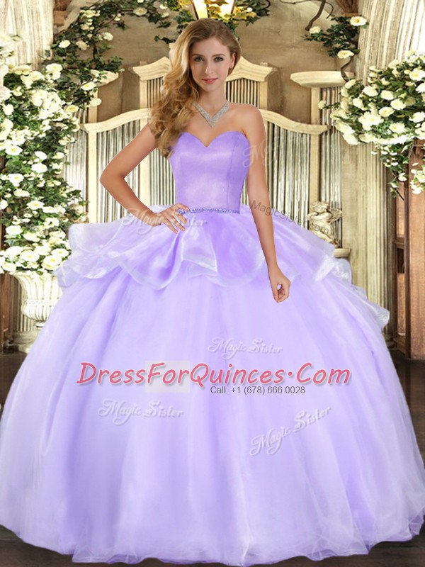 Lavender 15 Quinceanera Dress Military Ball and Sweet 16 and Quinceanera with Beading and Ruffles Sweetheart Sleeveless Lace Up