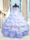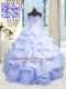 Light Blue Ball Gowns Beading and Ruffles Sweet 16 Dresses Lace Up Organza Sleeveless Floor Length