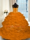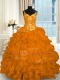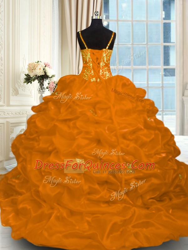 Orange Red Organza Lace Up Quinceanera Gown Sleeveless Brush Train Beading and Ruffles