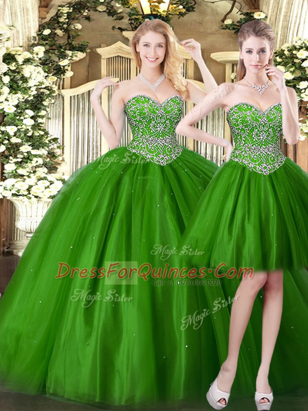 Popular Dark Green Lace Up Sweetheart Beading 15 Quinceanera Dress Tulle Sleeveless