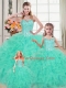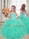 Pretty Beading and Ruffles Quinceanera Dress Turquoise Lace Up Sleeveless Floor Length