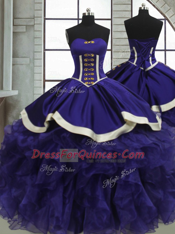 Purple Lace Up Sweet 16 Dress Ruffles Sleeveless Floor Length