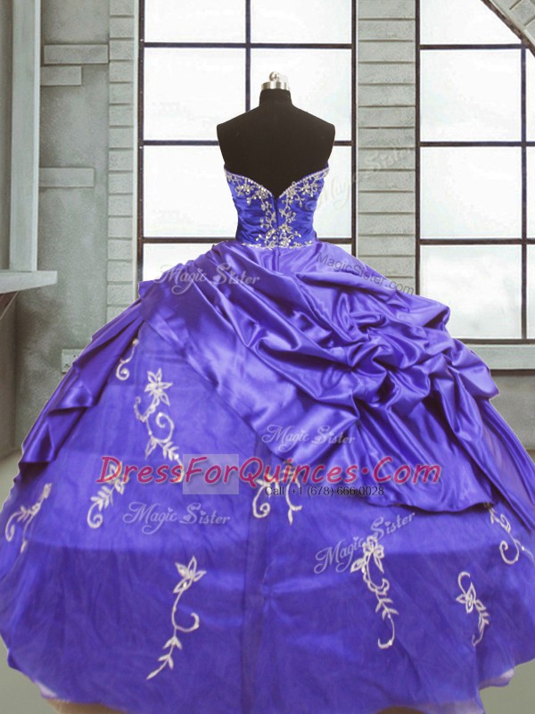 Purple Strapless Neckline Appliques and Pick Ups 15 Quinceanera Dress Sleeveless Zipper