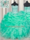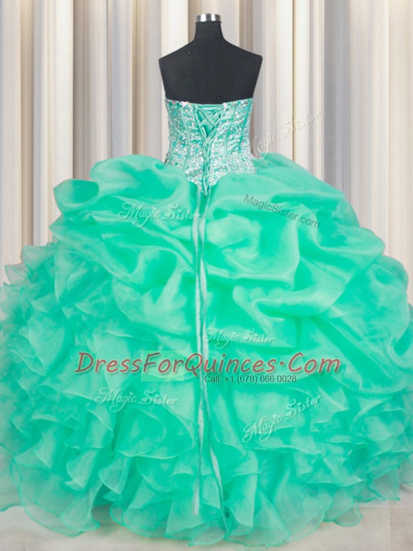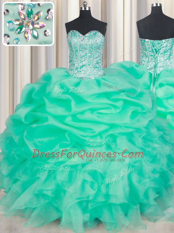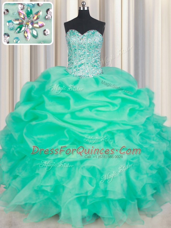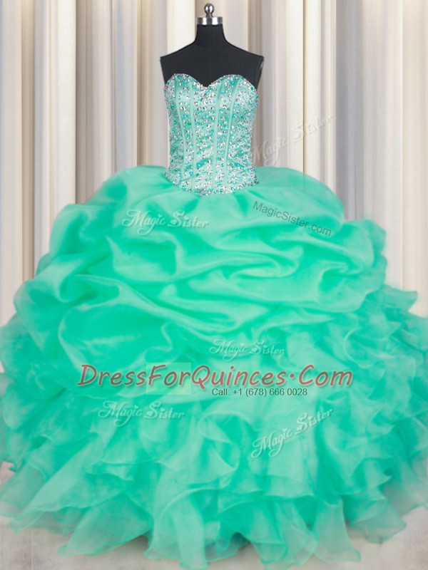 Romantic Turquoise Sweetheart Lace Up Beading and Ruffles and Pick Ups Quinceanera Dress Sleeveless