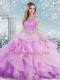 Scoop Sleeveless Organza Sweet 16 Dress Beading and Ruffles Clasp Handle