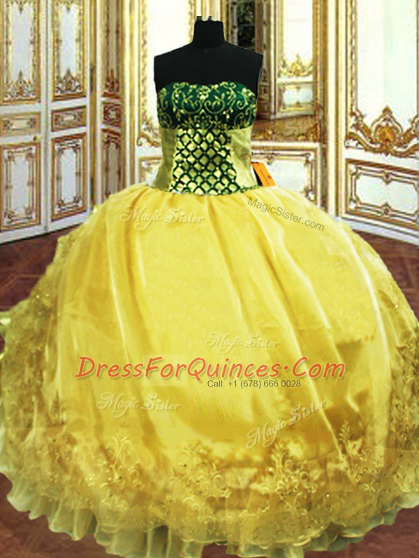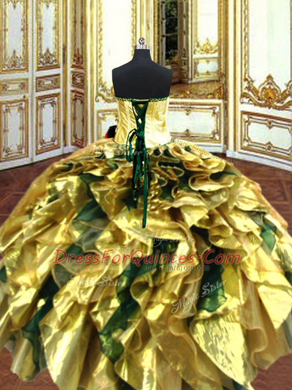 Sexy Organza Sweetheart Sleeveless Lace Up Embroidery and Ruffles Sweet 16 Quinceanera Dress in Gold