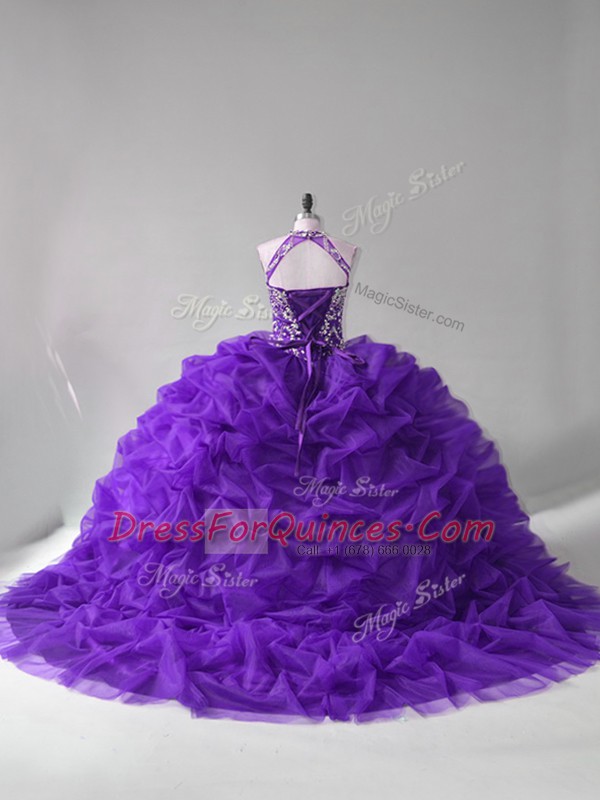 Shining Ball Gowns Sleeveless Purple 15 Quinceanera Dress Court Train Lace Up