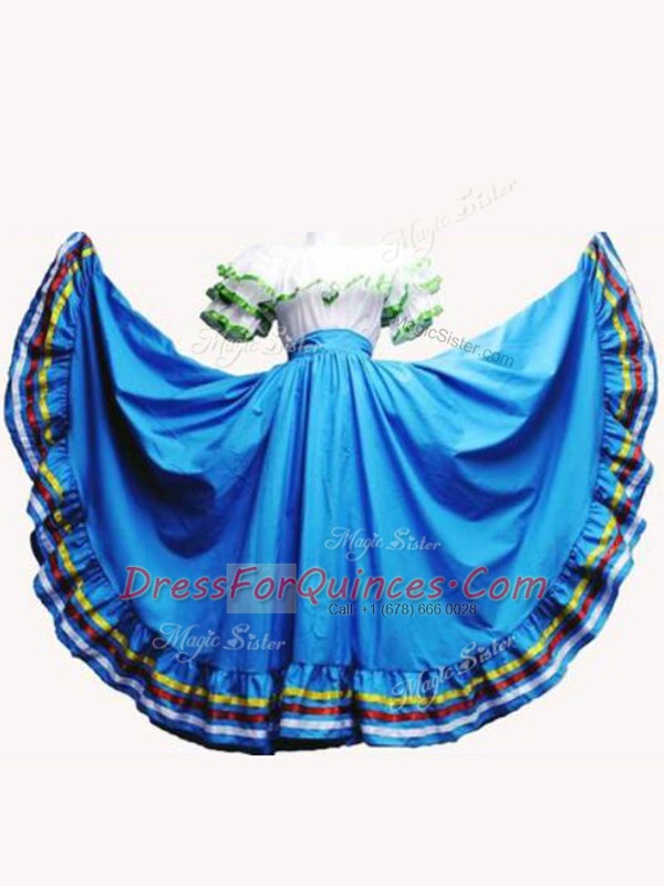 Sophisticated Floor Length Baby Blue Quinceanera Gowns Taffeta Short Sleeves Pick Ups