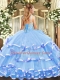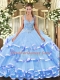Stylish Blue Ball Gowns Beading and Ruffled Layers Sweet 16 Dresses Lace Up Organza Sleeveless Floor Length