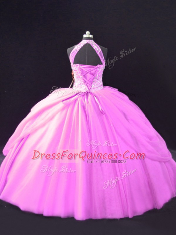 Sweet Floor Length Lilac Vestidos de Quinceanera Tulle Sleeveless Beading and Pick Ups