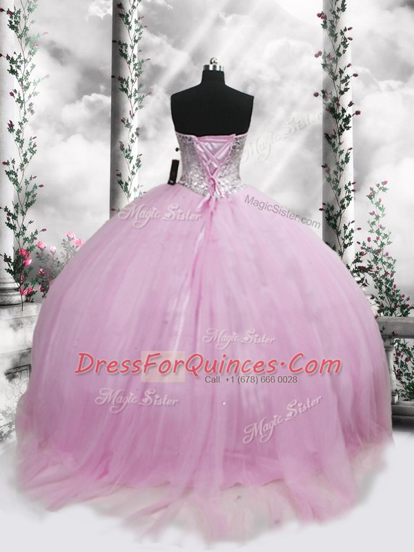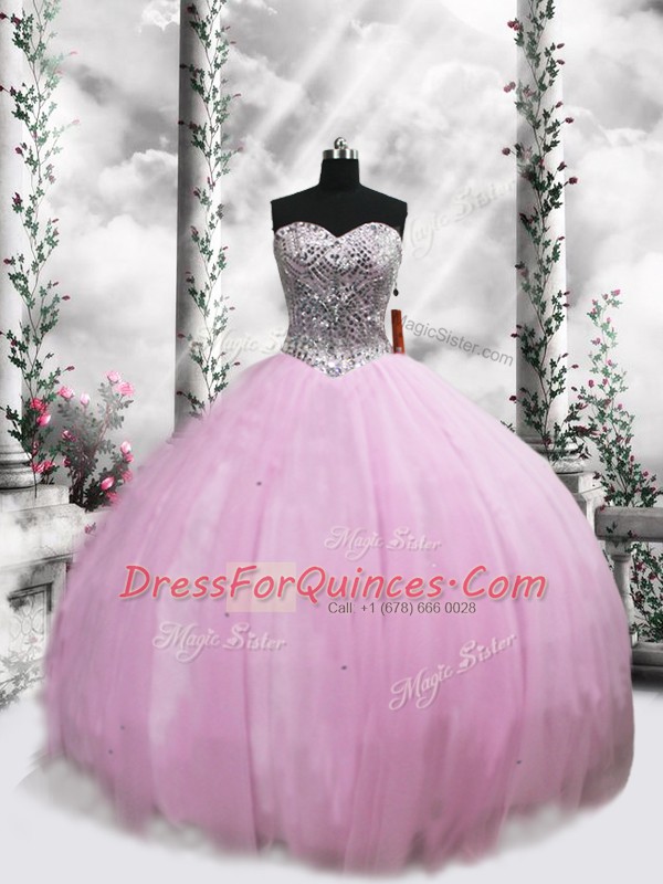 Sweet Lilac Ball Gowns Beading 15th Birthday Dress Lace Up Tulle Sleeveless